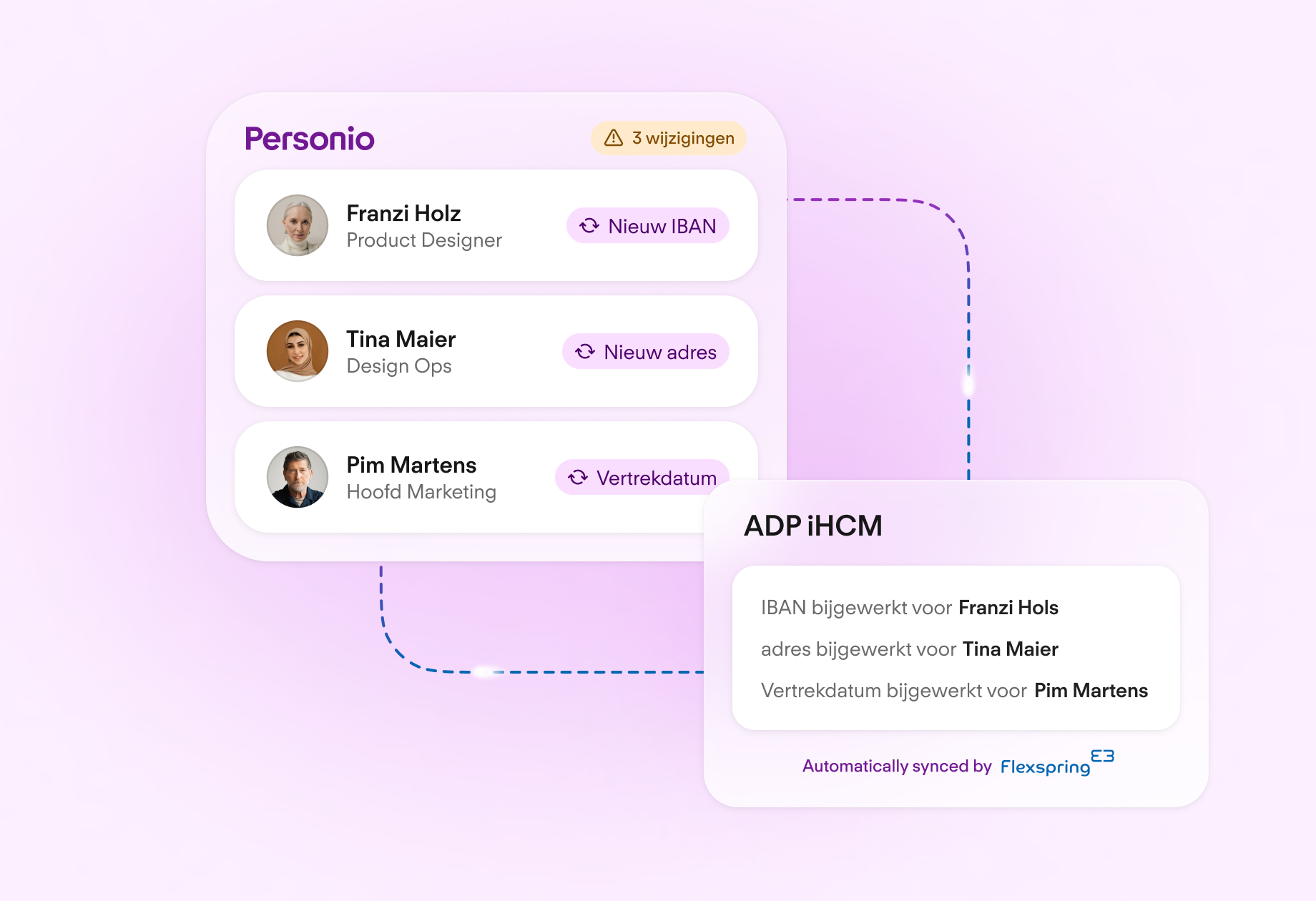 Synchroniseer alle salarisadministratie gegevens die zijn opgeslagen in Personio met ADP iHCM. De geautomatiseerde gegevensoverdracht maakt je loonverwerking soepeler, bespaart je tijd en vermindert handmatige fouten. Mogelijk gemaakt door onze partner Flexspring.